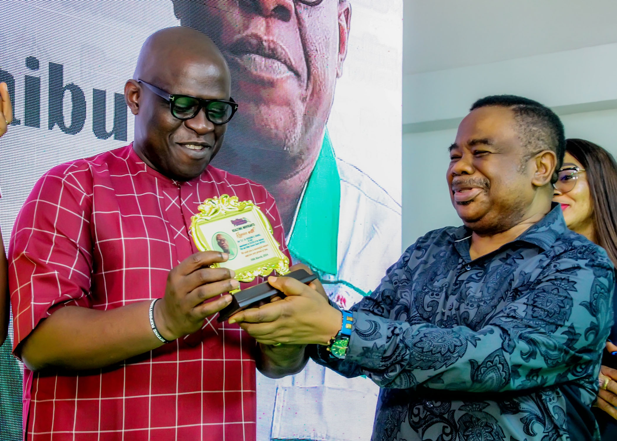 NFVCB boss, Dr Shaibu Husseini being presented with a commemorative plaque by the COSON Chairman, Chief Tony Okoroji